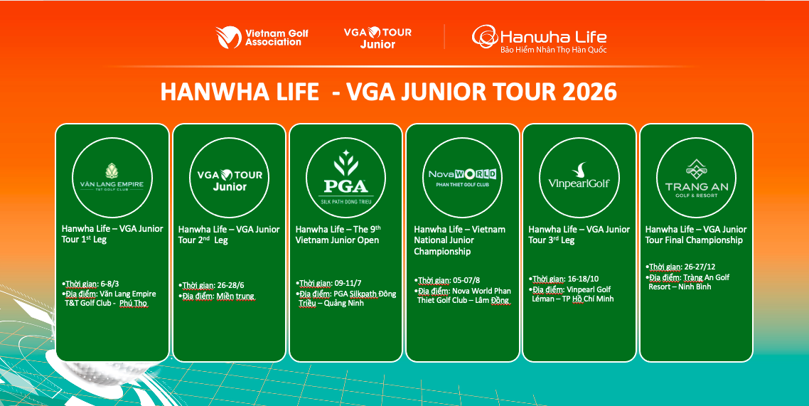 Hiệp hội golf Việt Nam công bố lịch trình mùa giải 2026 của VGA Junior Tour và nhà tài trợ Danh xưng Hanwha Life